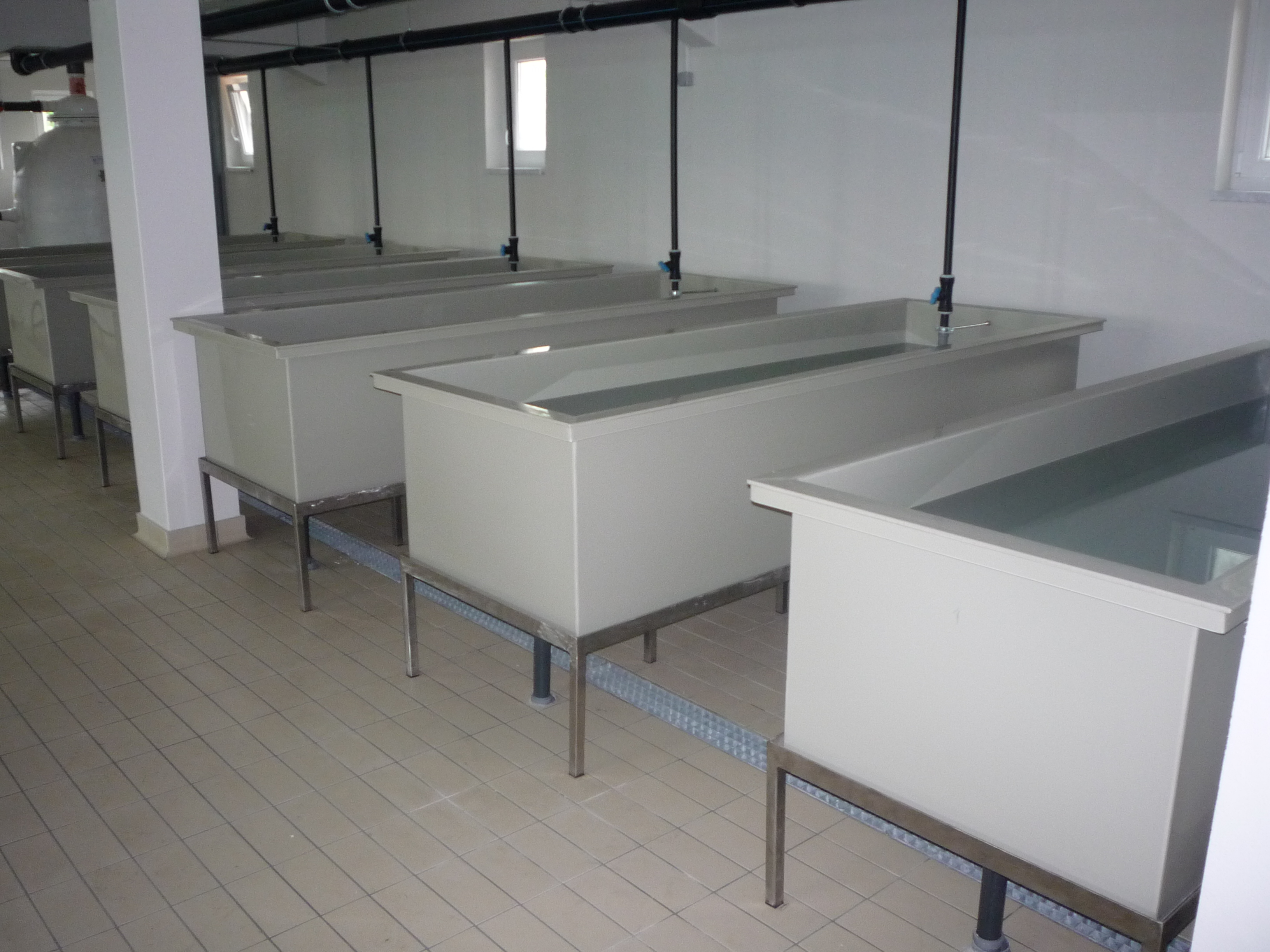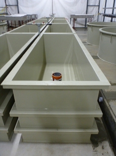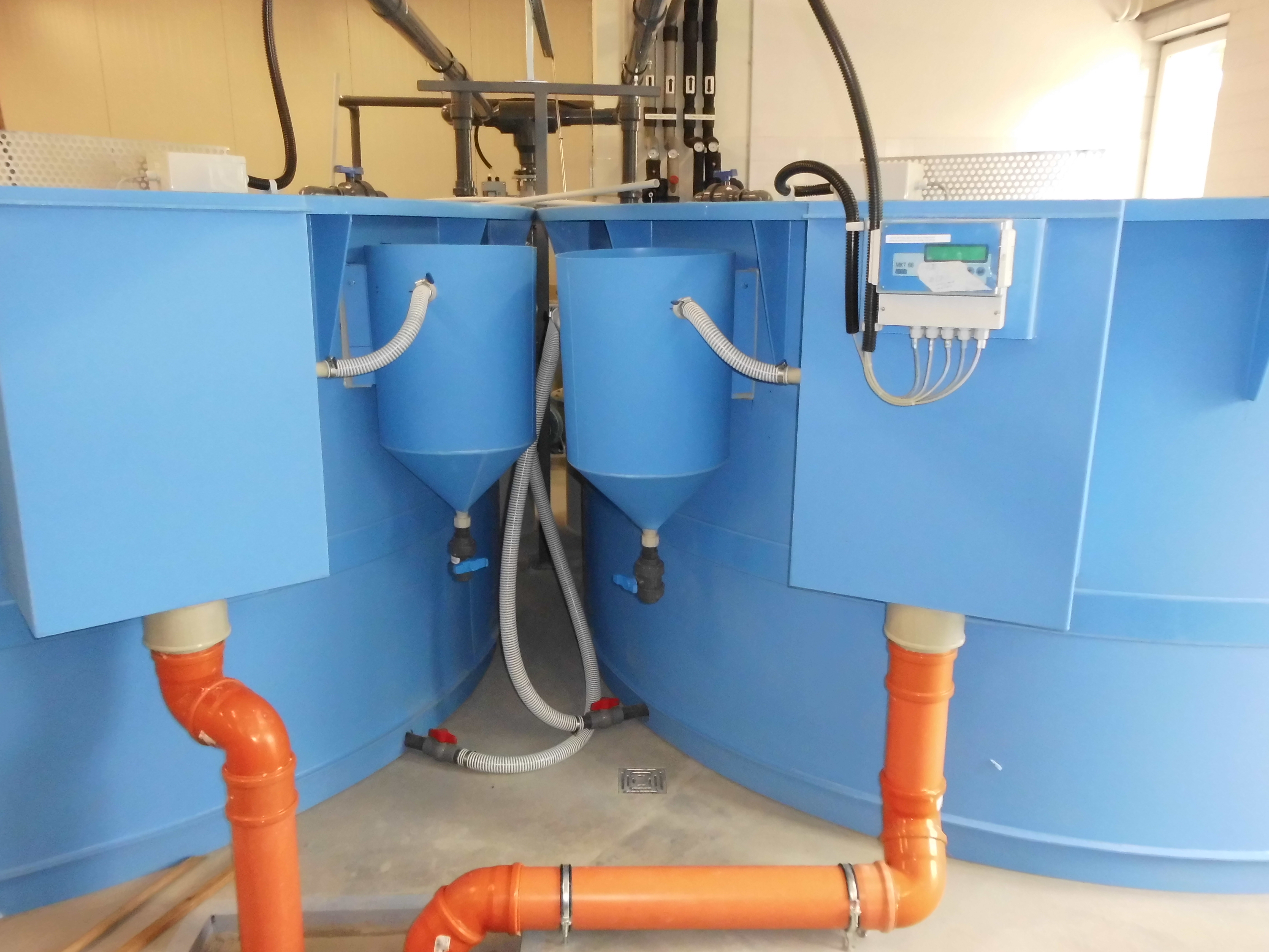 Halnevelő medencék kifolyódobozzal, zagyszeparátorral /Fish rearing tanks with outlet box and swirl separator