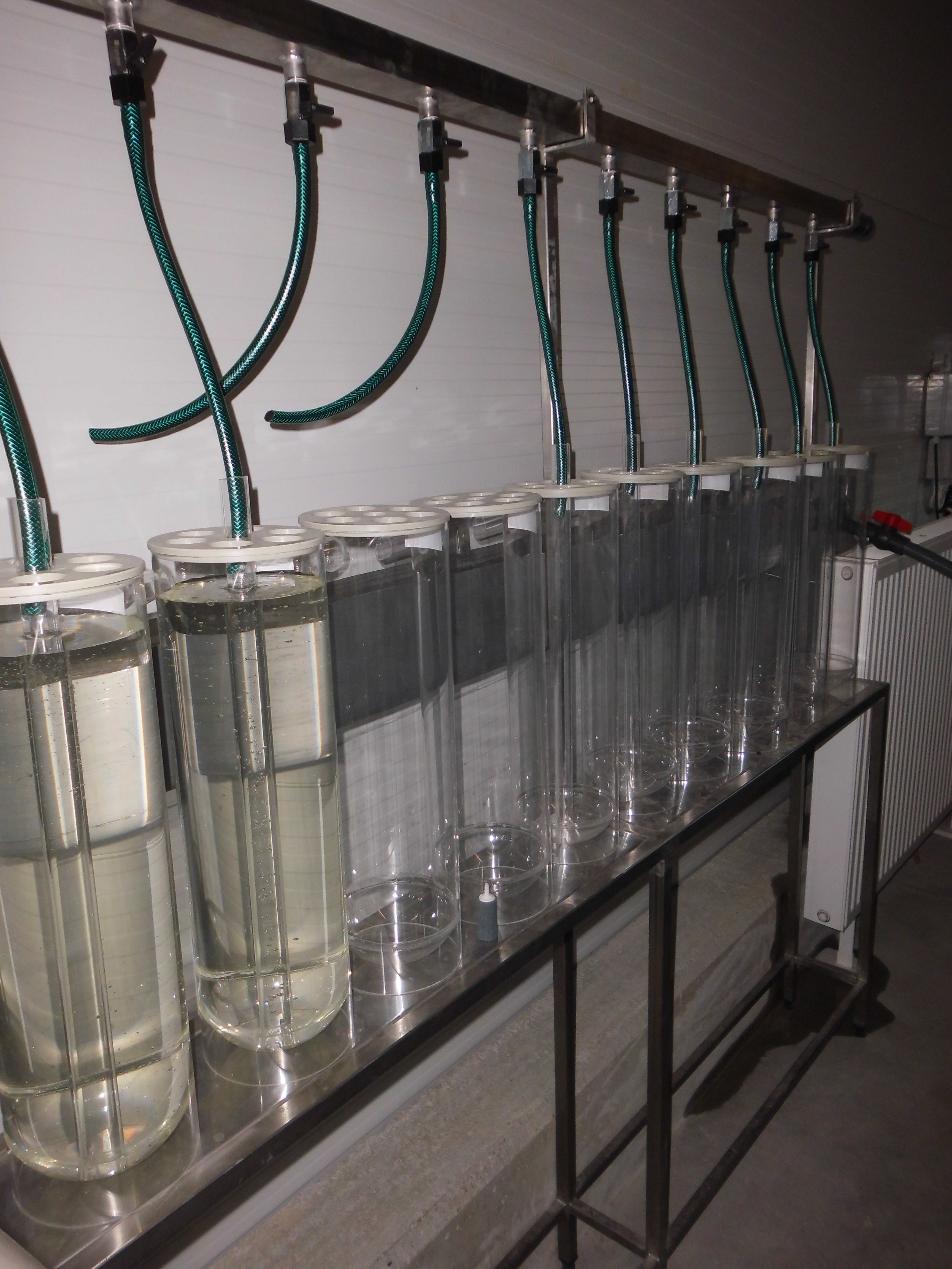 1. Halnevelő medencék a termelésnek megfelelő méretben és kialakításban/Fish rearing tanks – size, shape, quantity, dimensions according to production 2. Elfolyó csőméretezés, anyagkiírás/Outflow pipe dimensions, list of materials 3. Mechanikai szűrés méretezése/Mechanical filtration – design, dimensions, technical solutions 4. Biológiai szűrés méretezése/Biological filtration – design, dimensions 5. Szivattyúzás, méretezés/Pumping, pump selection 6. Egyéb szűréshez kapcsolódó műtárgyak és aknák/Additional tanks, sumps for filtration and water storage – design, dimensions 7. Befolyó csőméretezés, anyagkiírás/Inflow pipe dimensions, list of materials 8. Egyéb vízkezelés - UV, ózon, fehérjelefölöző - méretezés/Innovative water treatment techniques - UV, ozone, protein skimmer – design, dimensions 9. Levegőztetés és oxigénbeoldás/Aeration and oxygenation – techniques, design, dimensions 10. Vízcsere, vízszükséglet/Rate and source of water exchange, water supply 11. Zagy eltávolítása, a halnevelő rendszerből elfolyó víz kezelése/Sludge removal, effluent treatment